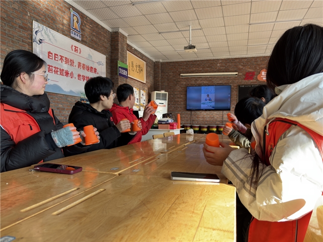 实践队员们通过“杯子舞”等破冰游戏,快速拉近与孩子们的距离,在轻松愉悦的氛围中,帮助孩子们建立自信,感受集体的温暖。活动伊始,孩子们略显拘谨,实践队员们便主动示范,用富有感染力的节奏带动大家参与。在整齐划一的拍手与杯子碰撞声中,孩子们从最初的羞涩跟随,到后来的主动参与、大胆尝试,每一次动作都传递着信任与快乐,现场氛围热烈而融洽。这场互动不仅是游戏,更是心与心的连接,让孩子们在集体中感受到被接纳、被重视的力量。
