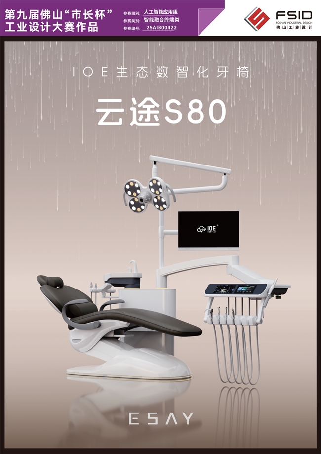 云途的明星产品S80生态数智化牙椅,是当前中国AI牙椅的标杆之作。它在第九届佛山“市长杯”工业设计大赛中,从3205份作品中杀出重围,荣获人工智能应用组铜奖。这不是一个普通的设计奖项,而是佛山市政府对“AI+制造”最高水平的认可。