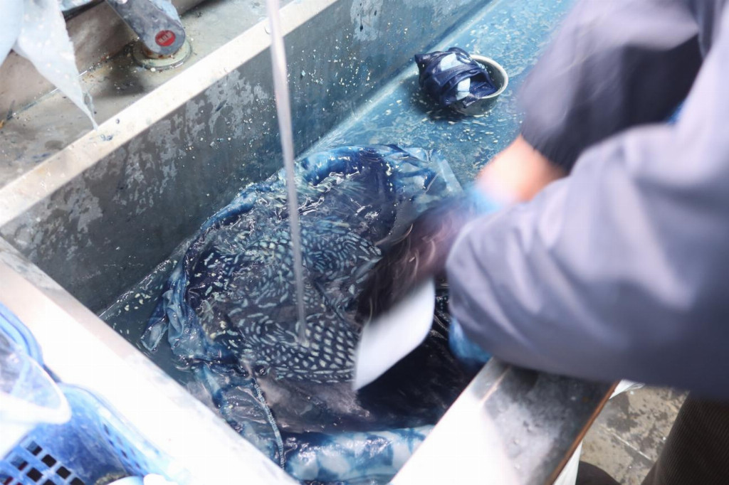 在充分了解工艺原理后,团队成员亲身投入动手实践环节,体验蓝印花布刻版、刮浆印染工艺。一雕一刻、一抹一刮间,尽显非遗技艺的匠心与巧思。看似简单的工序,却考验着耐心与细心,让成员们深刻体会到传统匠人坚守技艺的不易,也对“图必有意、意必吉祥”的蓝印花布非遗文化有了更深刻的理解。