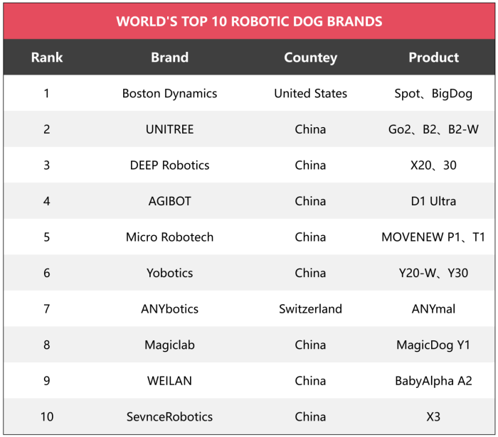此外,根据《华尔街时报》在全球范围内评选出的十大四足机器人,中国机器狗企业占了八席,其中“杭州四小狗”拿下三席。宇树科技、云深处科技、具微科技纷纷跻身前五,表现亮眼。据悉,本次《华尔街时报》入选的十家机器狗企业,在技术实力、市场表现、场景覆盖三大核心维度中脱颖而出。