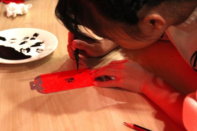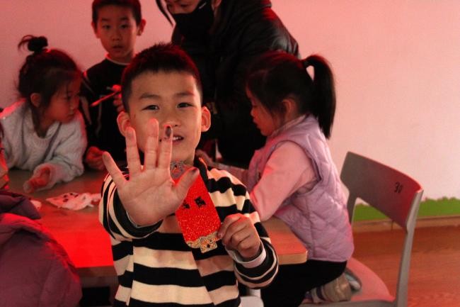 最令人期待的刷印环节到来时,孩子们早已跃跃欲试。志愿者先示范“轻蘸墨、均匀刷、慢按压”的操作要领:“油墨不能太多,不然会晕染;按压要轻柔,才能让字迹清晰显现。”孩子们佩戴好防护手套,小心翼翼地用小毛刷给活字刷墨,再将宣纸对齐铺好,用手掌轻轻按压。当一张张带着墨香的作品被小心揭起,看到自己排版的文字清晰呈现在纸上时,孩子们脸上洋溢着满满的成就感。“我印了‘马年’,要带回家给爸爸妈妈看!”一位小朋友举着作品骄傲地说道。