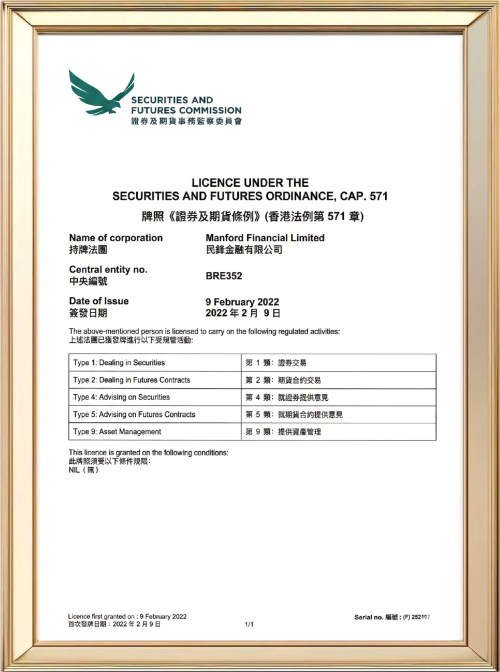 对金融科技平台而言,“可信”必须能被核验。万鑫智投披露其合规资质覆盖多项关键牌照:香港证监会(SFC)全牌照体系(中央编号:BRE352)、香港TCSP信托或公司服务提供者牌照,以及西班牙电子银行牌照,并明确列出SFC对应的第1/2/4/5/9类受规管活动范围。