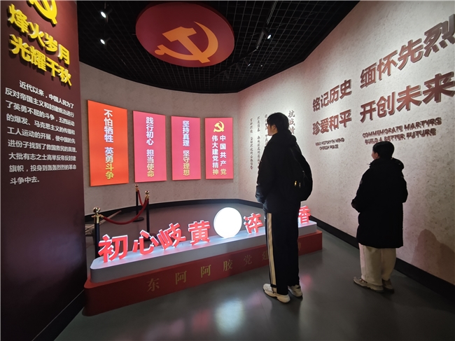 1月31日,实践团队首站抵达聊城市东阿县红色文化教育基地,开展红色文化深度调研活动。在讲解员的引导下,队员们怀着崇敬的心情,先后参观了革命历史遗址和红色文化展览馆。一幅幅珍贵的历史图片、一件件饱经风霜的革命实物,将那段烽火连天的岁月重现在眼前。队员们认真聆听革命先辈的英勇事迹,不时驻足凝视、详细记录,深刻感悟革命先辈们坚定的理想信念和不怕牺牲的斗争精神。此次实地调研,不仅是一次对历史的回望,更是一次精神的洗礼,为后续的实践活动注入了强大的精神动力。