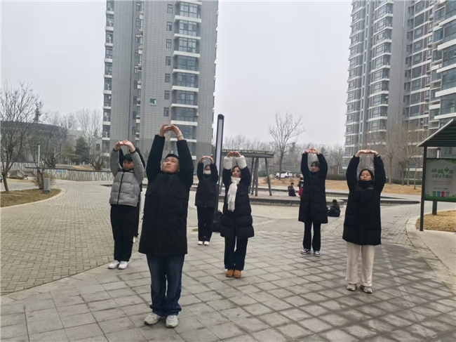 同日下午,一场主题为“传承红色基因 弘扬中医文化”的宣讲及八段锦教学活动也在和平社区新时代文明实践站火热开展。实践队员化身宣讲员,将红色教育与中医药养生巧妙融合。他们结合珍贵的历史图片和文献资料,生动讲述了土地革命战争时期和抗日战争时期,红军与八路军在缺医少药的艰苦环境下,如何利用当地中草药资源自救互救的故事。从井冈山的“红军医院”到长征途中的“草药医疗队”,一个个感人的故事让在场居民深受触动。宣讲结束后,队员们还带领居民们一招一式地学习中医传统养生功法“八段锦”,详细分解“两手托天理三焦”“左右开弓似射雕”等动作要领。居民们在舒缓的动作中既锻炼了身体,也加深了对中医文化的理解。活动将红色精神的传承与健康生活方式的倡导相结合,为建设健康和谐社区注入了新的活力。