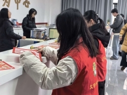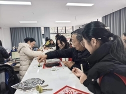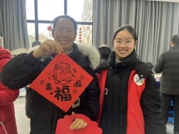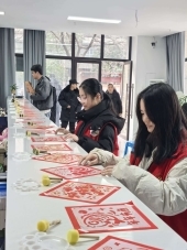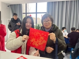 讲座结束后,趣味十足的福字拓印活动欢乐开启。在工作人员与实践队队员的耐心指引下,老人们兴致勃勃地动手创作,一张张形态各异的福字被创作出来。队员们主动帮忙倒墨、撕膜,陪伴老人亲切交谈,现场气氛温馨融洽,欢声笑语不断。活动不仅让老人感受到浓浓的节日氛围,也增强了他们的参与感与幸福感。