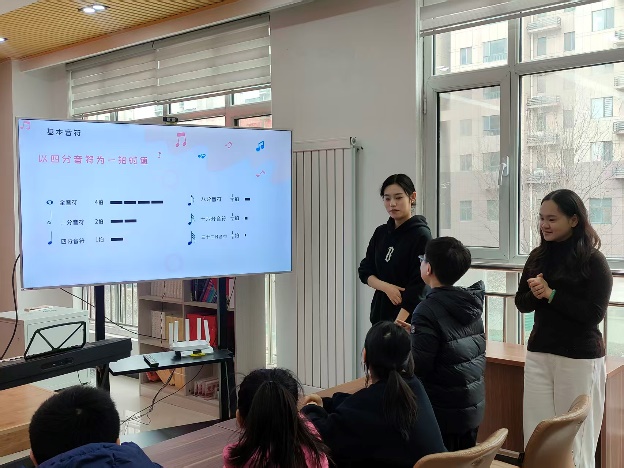 面向社区少年儿童,实践队开设乐理启蒙与舞蹈启蒙公益课堂,以趣味化、体验式教学激发孩子们的艺术兴趣。乐理课上,实践队员摒弃枯燥的理论讲解,采用节奏游戏、音阶模仿、乐器体验等形式,引导孩子们在“玩中学、学中玩”中掌握基础乐理知识。孩子们在拍手、跺脚中感知节奏,在欢声笑语中走近音乐,稚嫩的脸上写满好奇与欢喜,艺术的种子悄然萌芽。