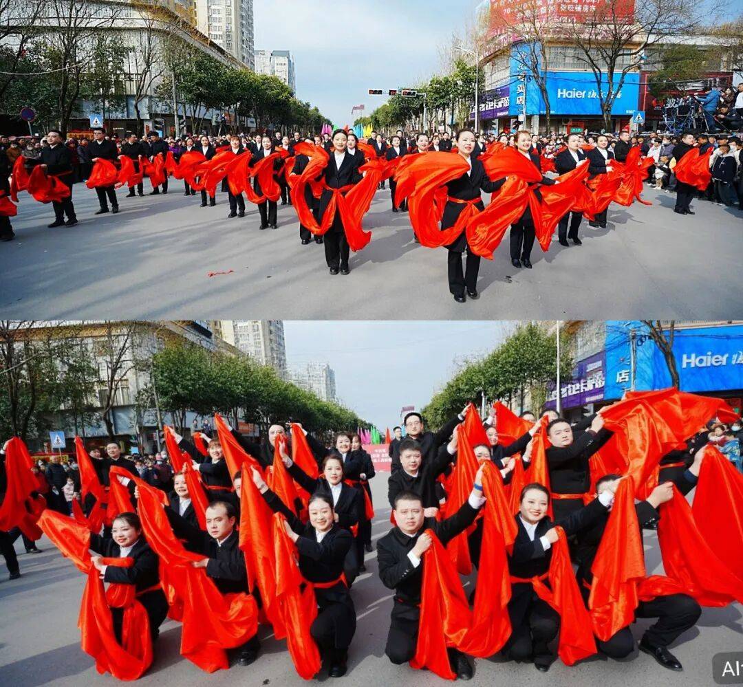 锣鼓喧天歌盛世,秧歌欢舞闹元宵。为传承中华优秀传统文化,丰富全县群众节日文化生活,营造喜庆祥和的节日氛围,3月2日上午,扶风联社精心组建60人大型秧歌队伍,倾情参与全县元宵节社火游演活动,以历年来最大阵容亮相全县春节文化活动,用热烈喜庆的民俗表演,向全县人民送上诚挚新春祝福,充分展现新时代农信人昂扬向上的精神风貌与使命担当。