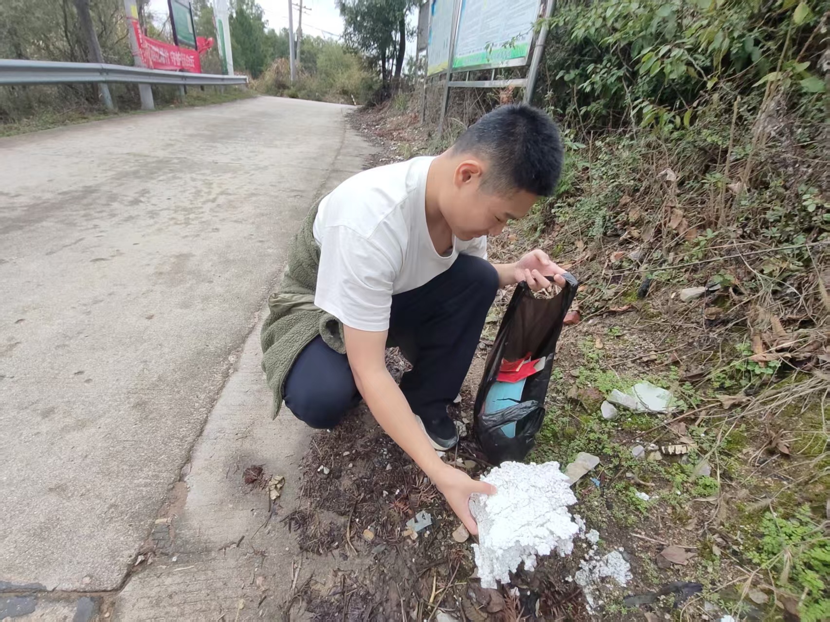 在维护乡村环境的行动中,他手持垃圾袋,沿着村道、沟渠等区域仔细捡拾塑料瓶、纸屑、泡沫等垃圾,重点清理卫生死角,用实际行动守护家乡的绿水青山。