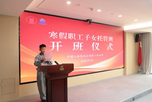 冬日暖阳映初心,关爱护航助成长。近日,中建八局西北公司第二分公司首届寒假职工子女托管班正式开班。陕西省建设工会女工委主任许娜、中建八局西北公司工会工作部副部长余晶晶、第二分公司总会计师杜娇等领导出席开班仪式,与二十余名职工子女共同见证这一温暖时刻。