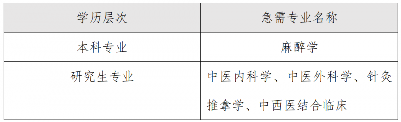 三、需求明确:急需麻醉学及中医临床等专业人才