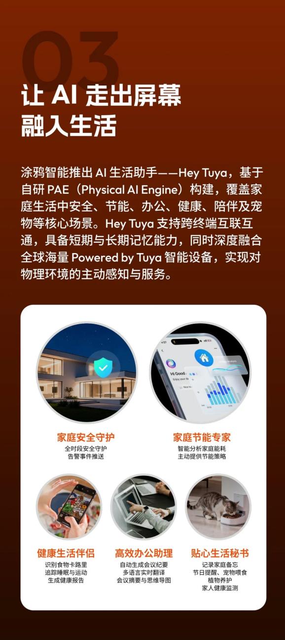 涂鸦智能(纽交所代码:TUYA;港交所代码:2391)是全球领先的AI云平台服务提供商,致力于将AI应用于生活,通过AI Agent开发平台、TuyaOpen开源开发框架等通用AI Agent引擎,集成多模态AI能力,降低AI开发门槛,高效推进AI生活实现,加速AI与物理世界的深度融合。涂鸦智能具备云计算及空间智能等能力,为智能设备、商业应用和行业开发者提供了全新物理AI技术解决方案,以及开放中立的全球化生态,激发了一个由品牌、原始设备制造商、AI Agents、系统集成商和独立软件供应商组成的充满活力的全球开发者社区,共同打造绿色低碳、安全、高效、敏捷和开放的智慧解决方案生态。