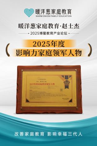 我们怀着无比激动与感恩的心情向您宣布:在近日于海南博鳌隆重举行的2025博鳌教育产业论坛上,暖洋葱家庭教育凭借卓越的品牌实力与深厚的专业积淀,从众多优秀机构中脱颖而出,一举斩获 “2025年度影响力家庭教育品牌” 大奖!同时,暖洋葱家庭教育研究院院长赵士杰老师以其在青少年心理与家庭教育领域的杰出贡献,荣获 “2025年度家庭教育领军人物” 殊荣!