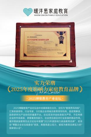我们深知,这份荣誉属于每一位信任暖洋葱的家长,属于每一个在成长道路上勇敢前行的孩子,也属于我们所有专业、热忱的暖洋葱伙伴。是你们的支持与陪伴,让我们在家庭教育的道路上坚定前行。
