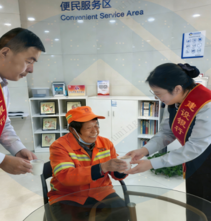 一杯暖身姜茶驱散凛冽寒气,一句贴心问候传递浓浓温情,让坚守在一线的“城市美容师”在雨雪天里感受到实实在在的尊重与温暖,充分彰显了中国建设银行对户外劳动者的诚挚敬意与暖心守护。(建行丰宁支行 许明琦)