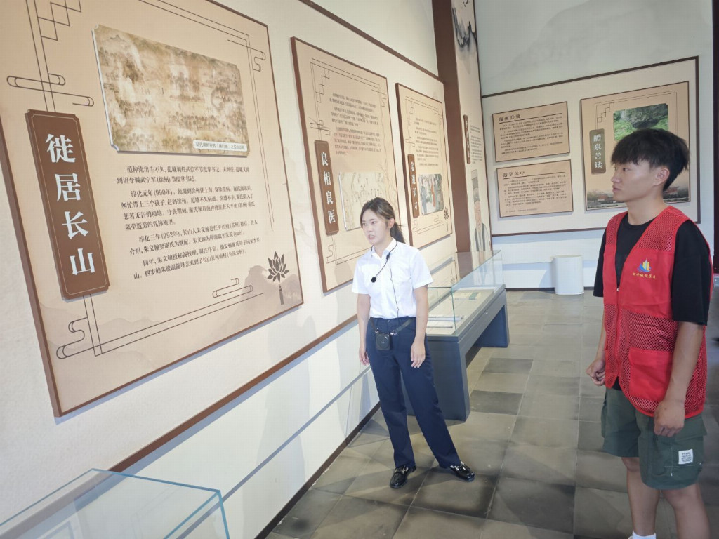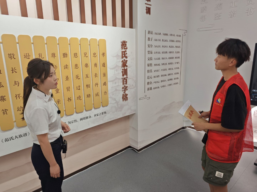 研学过程中,队员们认真聆听讲解、细致翻阅史料、交流感悟心得,沉浸式感受范仲淹的青春轨迹与崇高思想。大家不时驻足凝视、轻声探讨,在触摸历史遗迹、解读文物背后故事的过程中,深刻领悟“先忧后乐”思想的内涵。离开展厅时,一名队员在留言簿上深情写道:“每个时代都需要这样的青春榜样——既能在幽暗洞穴中点起火把,更敢为天下先点燃改革之火。”