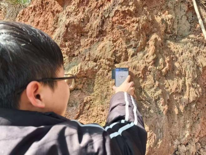 实践团成员走进山间田野,在四川省德阳市中江县凯江镇魁山村开展地质环境、土壤状况、岩层结构实地勘察。他们利用手机及智能地质仪器记录数据,分析区域地质特征与生态风险,识别出露岩层的岩性、产状及节理,评估边坡渗流、土层结构对滑坡、泥石流等灾害的潜在影响。基于专业分析,为当地生态治理和地质灾害防治提供了科学依据。