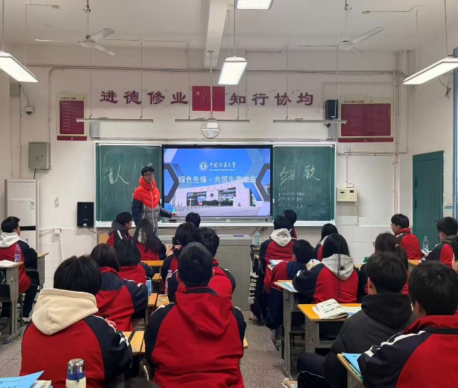 走出田野,走进课堂,实践团先后赴长沙市协均中学、闫庄镇第一初级中学、创A远航高中,将调研成果带回基层中学开展“绿色先锋·共筑生态未来”主题宣讲。成员用通俗语言,结合案例讲解露天堆放污染、地质灾害防治等知识,通过互动问答、案例分析,将环保理念融入课堂。他们以图片和视频展示生态破坏的危害与治理成效,引导学生思考“我们能为生态保护做什么”。学生们踊跃提问,现场气氛活跃,进一步加深了对生态保护的理解。