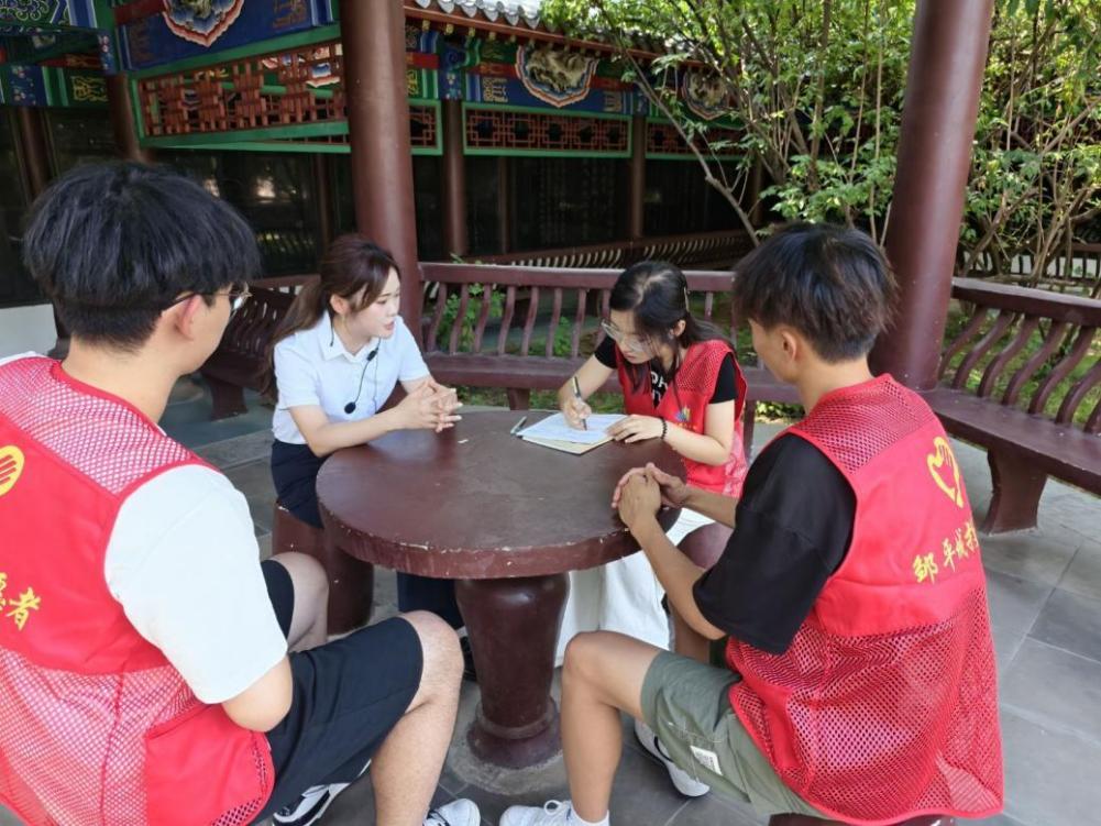 此次实地调研活动,不仅有参观学习、聆听讲解、集体诵读,实践队还特意设置了“忧乐精神与青春担当”分享环节。参观结束后,队员们围坐在祠内的古柏下,结合自身的大学生活与专业特色,畅谈如何践行范仲淹的忧乐精神。