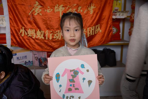 2026年2月28日,广西师范大学设计学院“猴背艺兴”设计赋能乡村振兴实践团前往桂林市莫家村儿童之家和柘木镇窑头村儿童之家,开展以资源县猴背村瑶族文化为主题的特色美育课堂活动。实践团将瑶族传统纹样、晒衣节习俗及特色服饰文化融入儿童艺术教育,通过沉浸式体验让乡村儿童感受非遗魅力。