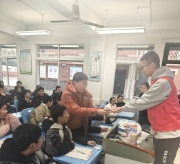 课堂上,团队队员们拿出精心准备的磁铁、铁钉、指南针、塑料片等道具,现场演示“磁铁吸铁不吸塑”“指南针永远指南方”等小实验。当看到铁钉被磁铁牢牢吸附,指南针在磁场作用下灵活转动,同学们纷纷瞪大双眼,踊跃举手想要亲自尝试。团队队员耐心指导,让每位同学都能参与其中,在宣传资料中了解磁场知识,为后续的知识科普打下坚实基础。