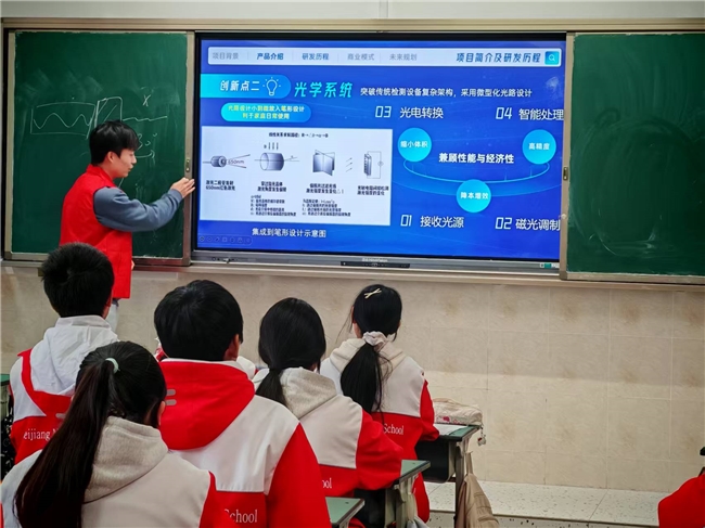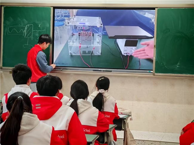 “这是我们团队自主研发的家用磁场安全检测仪,它能像‘科学侦探’一样,精准感知周围磁场强弱!”科普团队成员展示着自主设计的科普产品,引来同学们的阵阵惊叹。