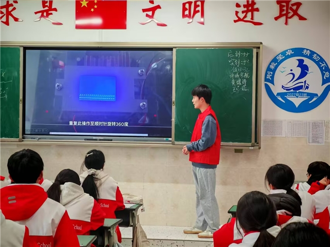 阳光透过教室窗户,洒在摆满科普宣传资料的课桌上,实践团队成员身着统一志愿服装,怀着饱满的热情迎接同学们的到来。“大家知道为什么磁铁能‘隔空吸物’吗?手机里藏着怎样的磁场秘密?” 团队队员以生活中的常见现象开篇,瞬间点燃了同学们的好奇心。