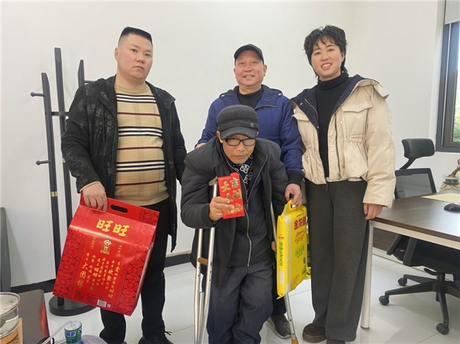 佰润分厂尤其惦念村内的特殊群体,特别邀请了村里的残疾老人来到办公室,为他们送上了一份“加码”的温暖。不仅有生活物资,厂领导还亲自为老人们送上了充满祝福的节日红包。厂领导与老人们促膝长谈,关切地询问他们的身体状况、家庭生活情况以及实际面临的困难,耐心倾听他们的心声。帮助老人们度过了一个更加温馨、宽裕的春节。