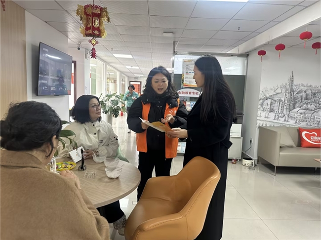 在客户品尝汤圆、等待办理业务的间隙,公司工作人员化身金融知识宣传员,主动走到客户身边,发放精心准备的宣传折页。