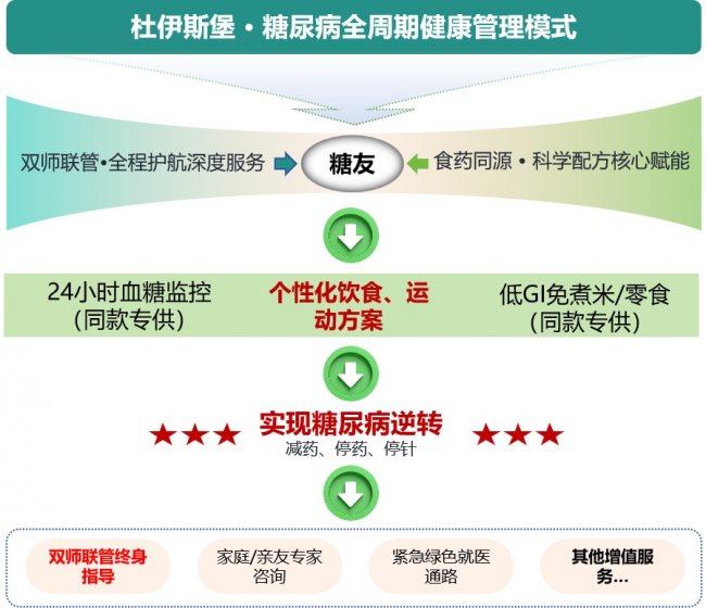 杜伊斯堡抗糖中心深耕糖尿病健康管理领域多年,始终以“逆转糖尿病”为核心目标,开创性提出“双师联管,食药同源,多通路多靶点逆转糖尿病全周期健康管理方案”。