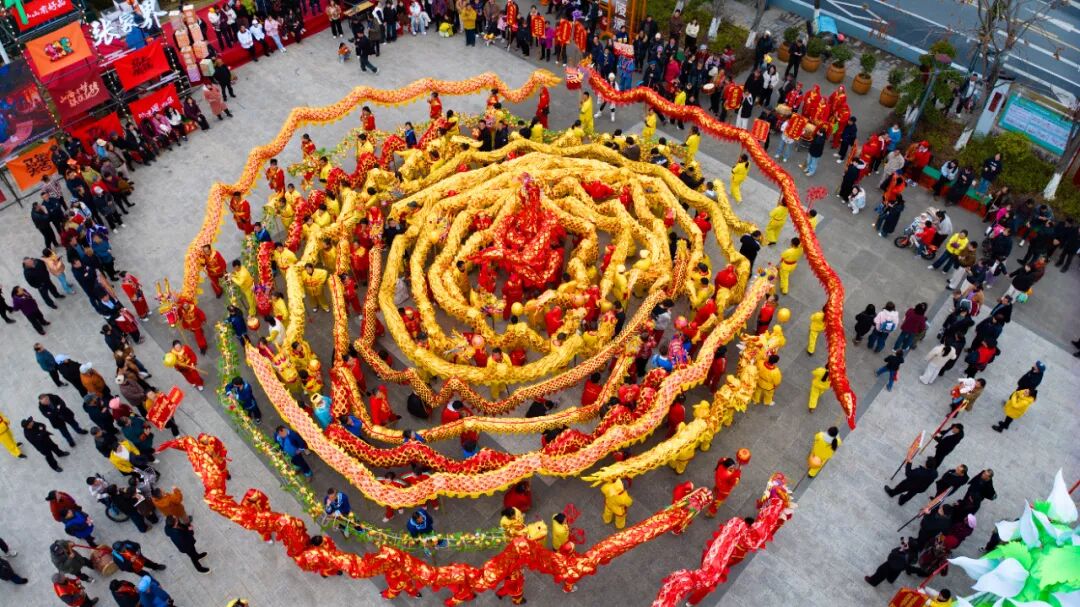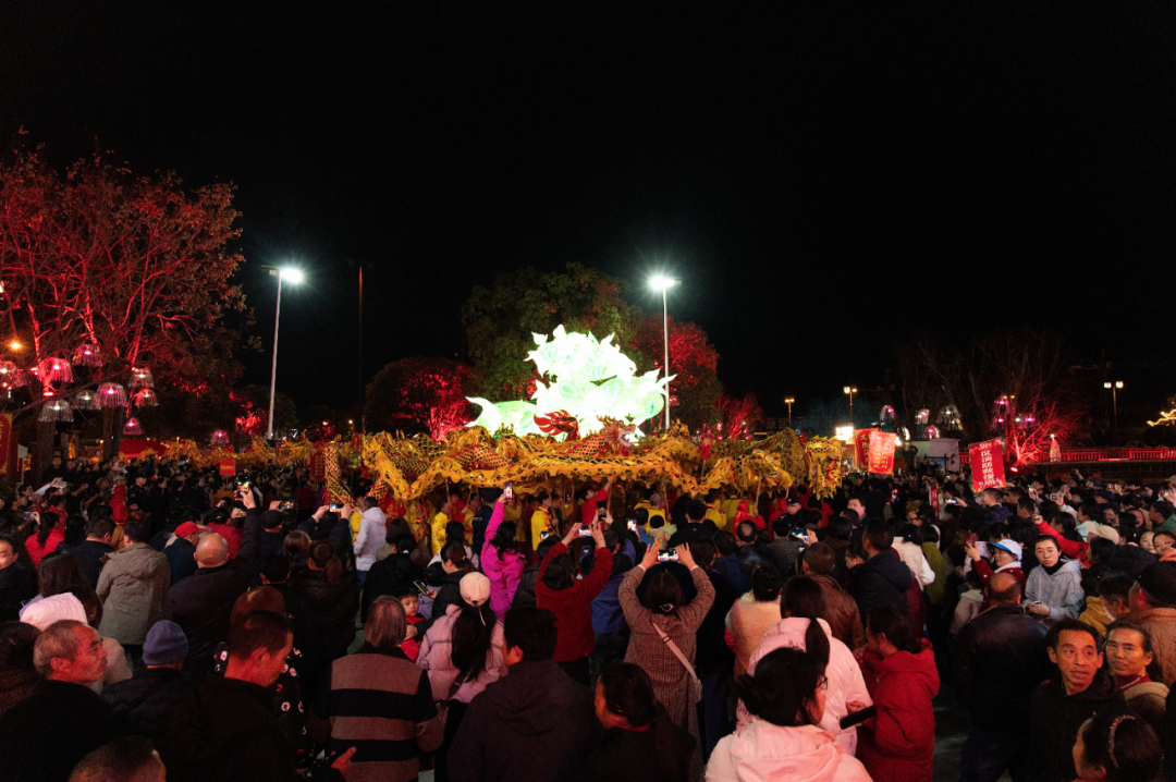 伴随着激昂的鼓点,队伍一路欢腾前往双拥文化广场。在广场中央,舞龙队伍迅速列阵,摆出“双龙入海”的震撼阵型,一场庄重的“收龙”仪式正式举行。舞龙队员们动作整齐划一,有条不紊地完成“龙首低垂”的收势动作,以传统民俗的方式祈愿风调雨顺、国泰民安,寄托着全区人民对新一年美好生活的向往与期许。