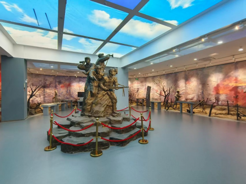 朱瑞将军纪念馆坐落于古黄河景观带东段,外观呈“八一”造型。大厅内5米高纯铜将军雕塑后,“人民的炮兵万岁”七个大字赫然醒目。“救国寻路、红军将领、抗日烽火、战地炮魂、民族长城”五大版块通过珍贵手稿、书信及沉浸式投影,再现“炮兵之父”的卓越贡献。游客服务中心内,“炮炮兵”文创IP以炮弹为原型设计,VR体验区可模拟操作榴弹炮射击;国防教育园陈列各类火炮复制品,“炮兵阵地”实景模拟区吸引青少年体验观测、装填流程。
