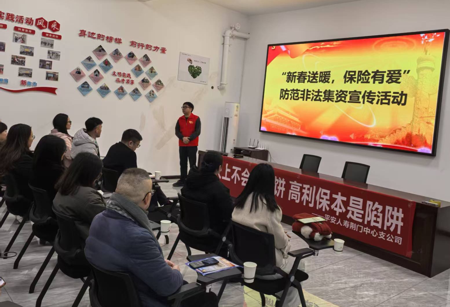 送知识,创新形式普及金融常识。活动期间,全省各营业单位深入社区、商圈、企业,针对春节高发的电信诈骗等非法金融活动,通过生动案例揭露骗术、提示风险。活动期间,共触及群众29933人,有效提升了群众的风险防范意识。黄冈中支推出“扎气球学金融”趣味活动,将保险知识融入游戏,吸引2000人次参与;黄石中支联合影院举办“好生活,享平安”主题观影,通过情景短剧演绎“保单避坑指南”;荆门中支采用“方言讲解+案例拆解”模式,发放防非反诈资料100余份,让金融知识更接地气。
