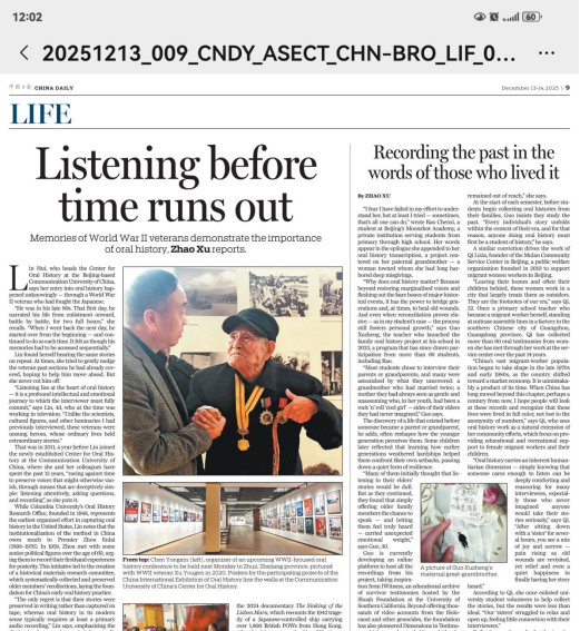 同时,这是继本人作总策划、制片人、主持人的《寻找飘荡的忠魂》《重返缅甸战场》两部纪录片两度入围中国口述历史国际展优秀作品后,中国传媒大学再次赋予的殊荣和首次深度的合作。