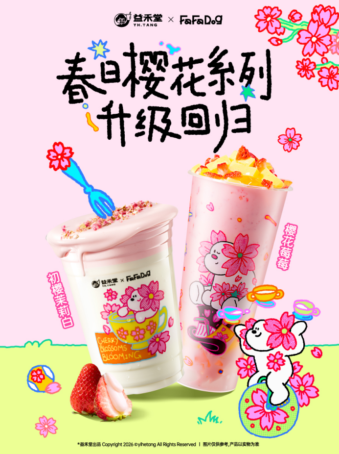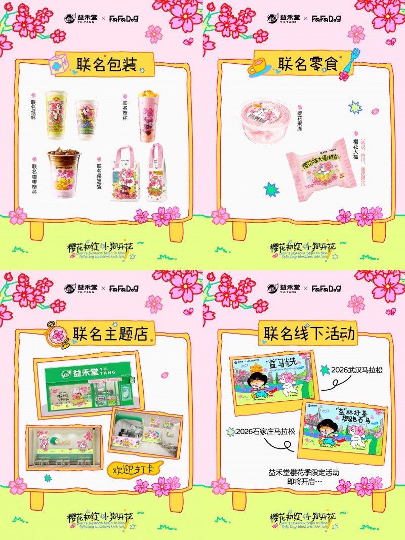 每年樱花季,粉色如期而至。但当“樱花”成为流水线上的季节符号,满屏粉红再难激起内心波澜——品牌还能给消费者什么?益禾堂选择联名治愈系IP FaFaDog,让一只“会开花的狗”,陪你过春天。这个春天不止有樱花,更有一份可以握在手心的情绪价值。