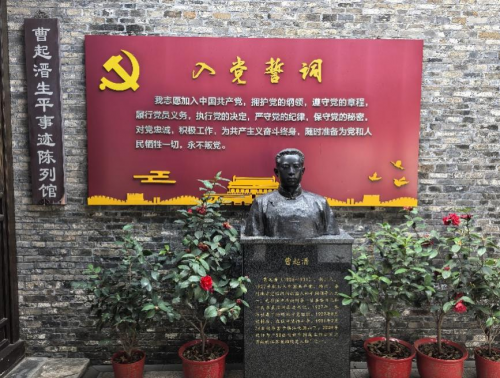 图为团队成员于曹起溍故居所摄曹起溍塑像