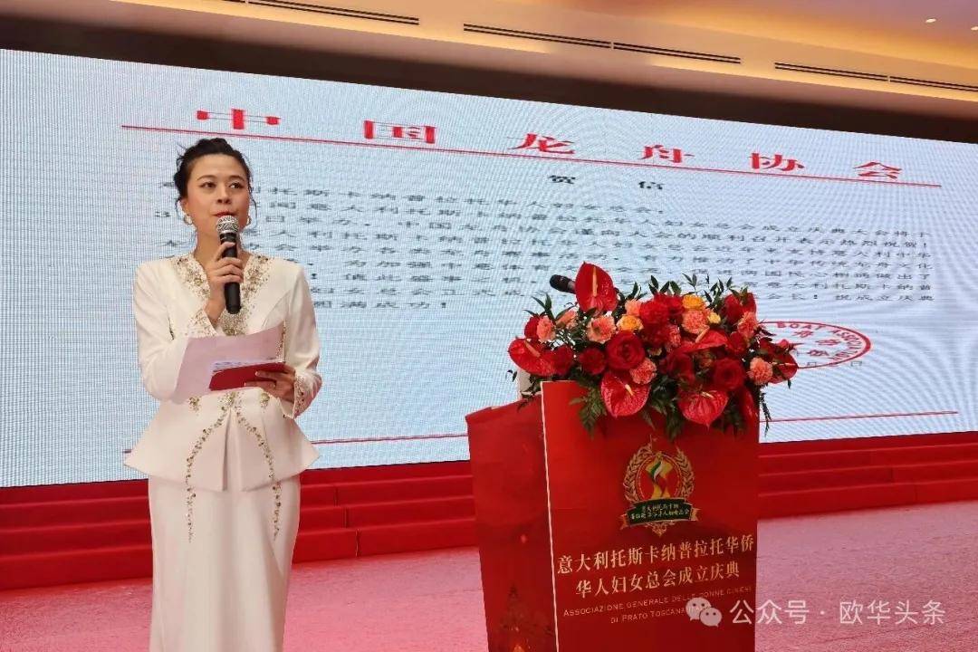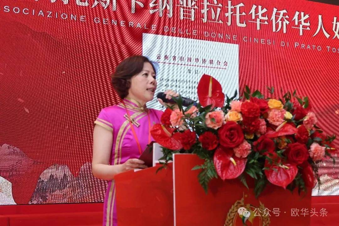 ▲欧洲华人华侨妇女联合总会主席龚秀莲发表讲话。龚秀莲主席在视频讲话中表示,妇女组织的发展离不开团结与担当。她高度肯定托斯卡纳普拉托华侨华人妇女总会的筹备工作,并期待双方加强联动,在女性成长、家庭教育、公益慈善等领域深化合作,共同展现海外华人女性自信、自立、自强的时代风采。