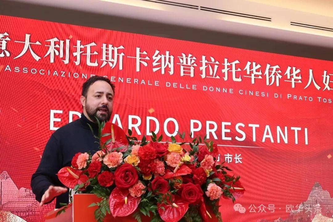 ▲Carmignano 市市长Edoardo Prestanti 致辞。Edoardo Prestanti市长表示,很高兴参与此次庆典。虽然Carmignano是一座规模不大的城市,但这里生活着不少中国朋友,大家为当地社会注入了活力。看到普拉托妇女总会的诞生,他感到十分欣慰,并期待女性力量能够携手成长、共同进步。他还热情介绍,Carmignano拥有优质的葡萄酒与橄榄油,诚挚欢迎大家前往参观交流,增进中意文化对话。当地也开设有太极课程,希望更多华人朋友积极融入,共建多元和谐的社区。