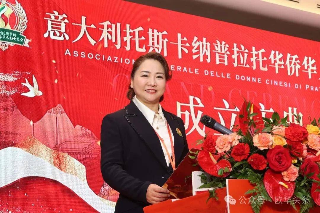▲意大利托斯卡纳普拉托华侨华人妇女总会创会会长余冬红发表就职演讲。余冬红会长首先代表意大利托斯卡纳普拉托华侨华人妇女总会,向长期关心和支持华侨华人事业发展的中国驻佛罗伦萨总领事馆、普拉托各级政府部门,以及一直以来给予帮助与信任的兄弟侨团和社会各界朋友,致以衷心感谢和崇高敬意。余冬红会长表示,站在新的起点上,深感责任重大。“这不仅是一份职务,更是一份托付。”她强调,在托斯卡纳、在普拉托,广大华侨华人女性以勤劳、坚韧与善良扎根异乡,在守护家庭、发展事业、回馈社会中发挥着独特而重要的作用。她们既是母亲、妻子,也是创业者,更是连接家庭与社会、传承文化与情感的重要力量。正是这份共同的经历与情感,促成了妇女总会的应运而生。