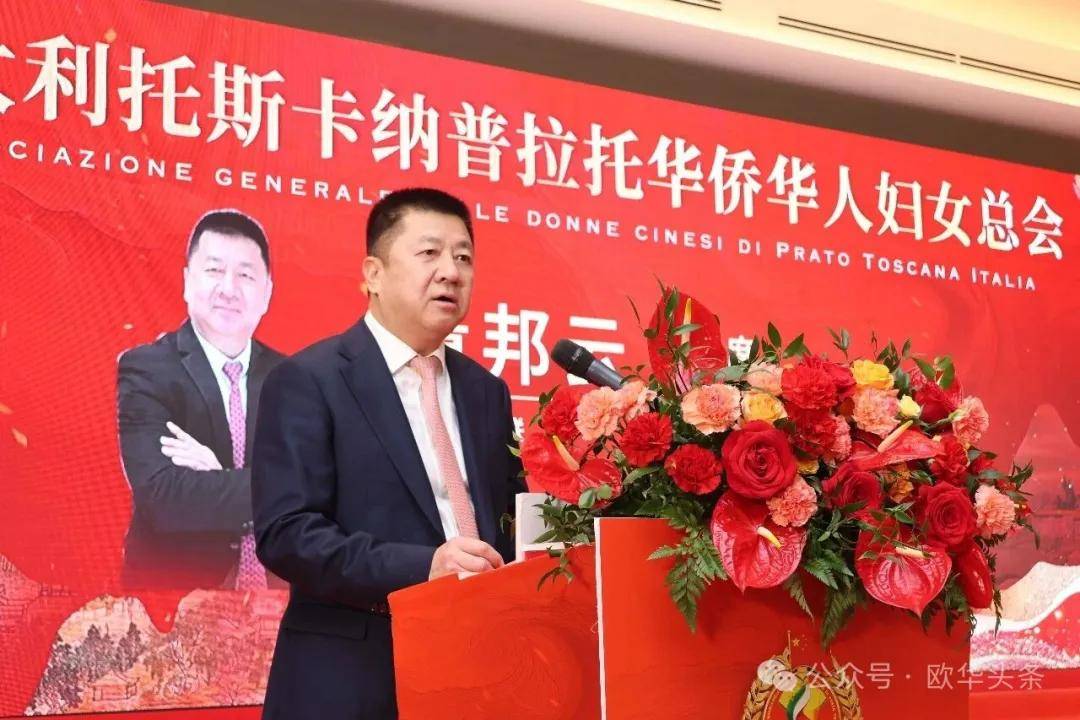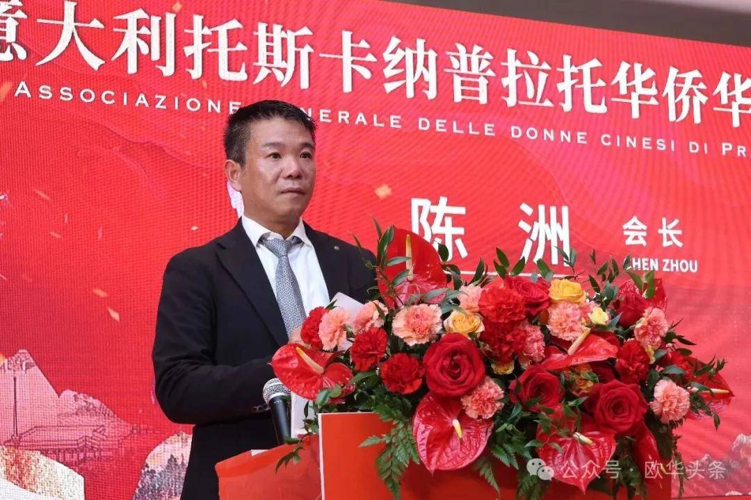 ▲普拉托华人华侨联谊会会长陈洲发表讲话。陈洲会长表示,普拉托侨社的发展离不开女性同胞的辛勤付出。妇女总会的成立,不仅丰富了侨团组织结构,也为女性参与社会事务、实现自我提升创造了更广阔空间。希望今后加强侨团之间的沟通合作,共同推动侨社健康有序发展。