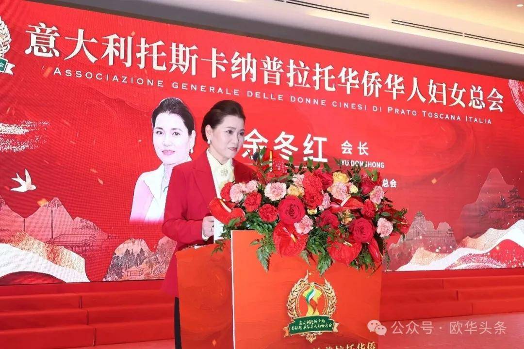 她郑重承诺,将与理事会全体成员一道,珍惜信任、脚踏实地、用心服务,不辜负大家的期望,不辜负共同开启的新征程。致辞最后,余冬工会长衷心祝愿意大利托斯卡纳普拉托华侨华人妇女总会行稳致远、枝繁叶茂,祝愿各位来宾身体健康、家庭幸福,祝愿侨社更加团结和谐,祝愿伟大祖国繁荣昌盛。