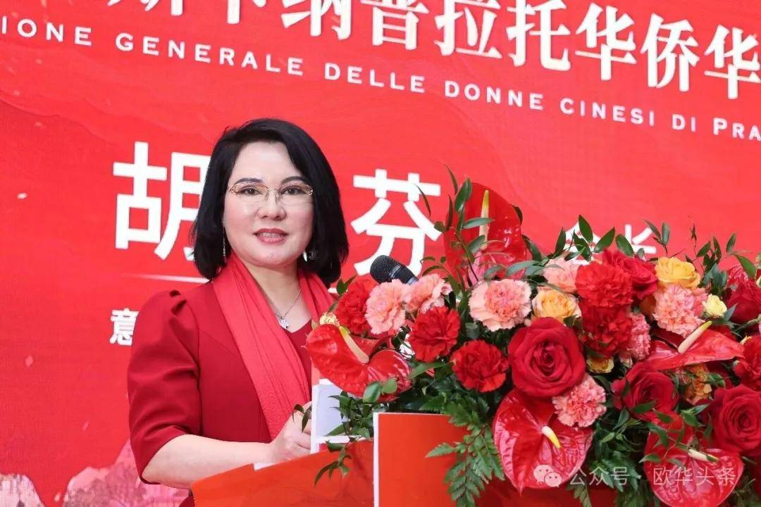 ▲意大利(中国)侨商总会会长胡爱芬发表讲话。胡爱芬在致辞中对妇女会的成立表示热烈祝贺。她表示,华人社团的发展离不开团结与担当,女性力量在其中发挥着越来越重要的作用。妇女会的成立,不仅为华人女性搭建了交流互助的平台,也为侨界注入了新的活力与温度。