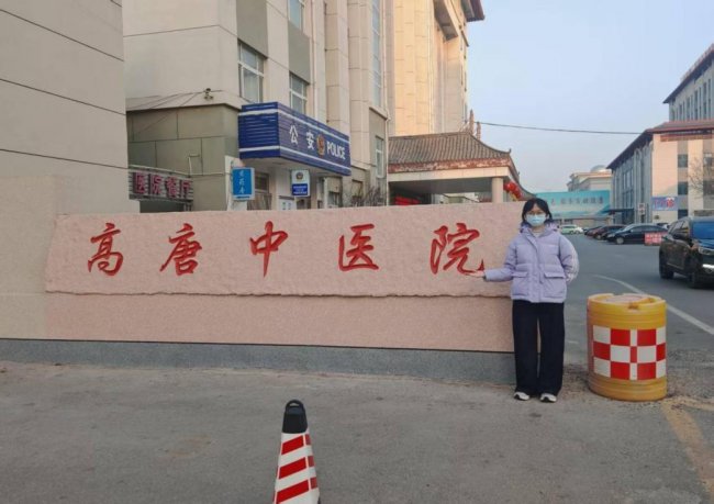 图为团队成员在高唐县中医院正门石碑前留影