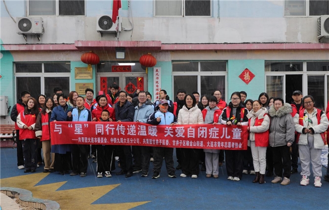 在第63个学雷锋纪念日到来之际,近日,中铁九局大连分公司联合大连团市委、共青团甘井子区委、甘井子区椒金山街道、大连市青年志愿者协会联合开展了“与‘星’同行 传递温暖”关爱自闭症儿童志愿服务活动,以实际行动弘扬新时代雷锋精神。来自中铁九局大连分公司、椒金山街道及社区的40余名青年志愿者伴着风雪,走进晨光书院自闭症儿童康复中心,为“星星的孩子们”送上关怀与温暖。