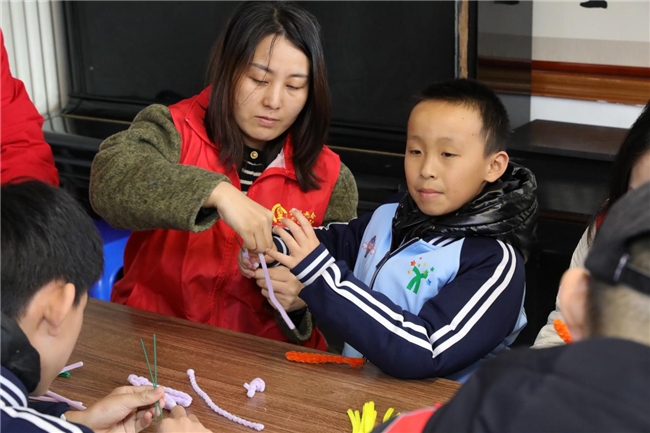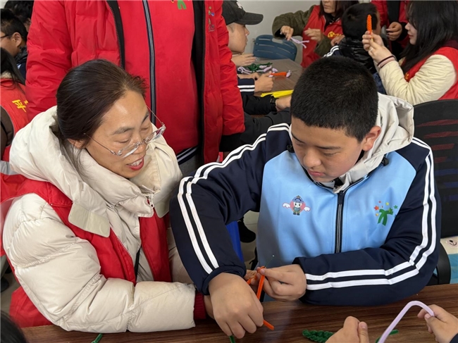 手工互动中,志愿者与“星星儿童”们手持彩色扭扭棒,共同制作向阳花束。志愿者们耐心引导、悉心陪伴,手把手协助孩子们完成手工作品,在轻松愉悦的氛围中拉近与孩子们的距离,帮助孩子们打开心扉、感受温暖。活动最后,志愿者为孩子们送上慰问关爱,用点滴行动为“星星的孩子”撑起一片温暖的天空。