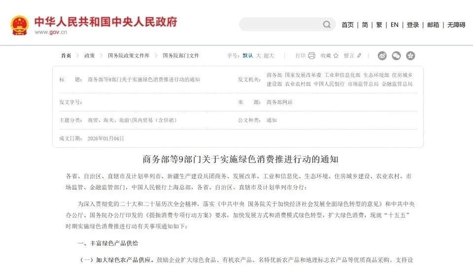 近日,商务部、国家发展改革委、工业和信息化部等9部门联合印发《关于实施绿色消费推进行动的通知》。通知明确提出,在“十五五”时期要加快消费模式绿色转型,其中“推广绿色消费积分”被列为创新绿色消费模式的核心举措。