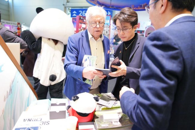 作为全球旅游业的顶级盛会,柏林国际旅游交易会被誉为行业“风向标”。2025年展会共吸引来自170多个国家和地区的5800余家参展商及逾10万名专业观众。今年,四川展团亮相位于柏林国际展览中心的中国馆,通过双语宣传资料发放、旅游线路专业咨询、入境业务洽谈对接,以及四川非遗文创展示和熊猫人偶现场互动,向全球旅行商全方位推介四川文旅资源和产品。本次参展特别联动重庆市文旅委,围绕“巴蜀文化旅游走廊”主题,共同推出串联线路产品,覆盖大熊猫栖息地、长江三峡、世界遗产等核心资源,共同携手拓展国际高端客源、深化巴蜀文化旅游走廊全球影响力,推动欧洲旅行商将川渝两地纳入入境游重点目的地。