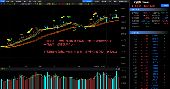沪指周二大跌的同时,出现了日线顶部结构。现在虽然有短线反弹,但这个反弹到底能涨多少、涨多久,没法判断;而且现在这个反弹的低点,也没有低点属性,所以暂时只能算 “调整过程中的反弹”,无法判定调整是否结束。正常来说,只要日线出现顶部结构,对应的调整要么不来,一旦来了,幅度就不会太小 —— 因此这里还是要适当防守。如果只是一两天的小调整,根本不用当回事,但这次不一样,可能级别会更大。最近这段时间,可能都无法判定低点,哪怕是小周期的低点,至少也得有明确的判断条件才行。沪指之前跌破了短期的趋势带,紧接着就反弹了,这样一来,近期就不会有 “序列低点” 了;更不会有 “结构低点”,因为形成底部结构,得先有底部钝化,而钝化的前提是下跌速度变慢,现在这些条件都没有,所以短期也不可能出现底部结构。总结一下就是:短期没有确定性的低点信号,建议控制好仓位,适当防守,耐心等明确的信号(比如下跌变慢、出现底部特征)再动。