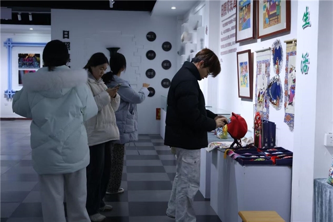 日照刺绣,作为鲁绣的重要支脉,历史悠久,兼具胶东与沂蒙的风格特色。其以双股加捻棉线为绣线,图案厚实清晰,色彩明快鲜艳,不仅是技艺的展现,更是沿海百姓对海洋文明的理解与情感寄托。1月14日下午,声画守艺人社会实践队抵达日照刺绣非遗传承基地。非遗传承人李兆梅老师首先向队员们展示了珍藏的代表性绣品,从充满生活气息的日常用品到寓意吉祥的礼仪饰物,题材丰富,地域特色鲜明。