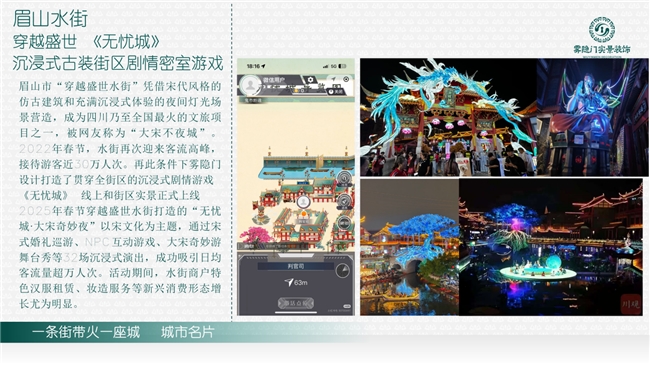 雾隐门为 “大宋不夜城” 眉山水街打造沉浸式剧情游戏《无忧城》,实现线上线下同步运营,该项目国庆期间客流达16 万人次,同比增幅 25%。2025 年春节推出 “大宋奇妙夜”,32 场沉浸式演出日均吸引客流超万人次,带动汉服租赁、妆造等消费显著增长 45%,视频总曝光量达7687 万次,实现文化体验与商业价值双赢,为传统街区活化提供范本,被 30 余家媒体报道推广。