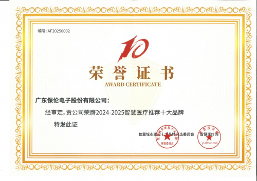 近日,由智慧城市建设十大品牌评选委员会、安防展览网、智慧旅游网、智慧医疗网联合主办的“2024-2025年度智慧城市十大推荐品牌”评选榜单重磅揭晓。其中,广东保伦电子股份有限公司(简称“itc保伦股份”)凭借在医疗领域丰富的产品链和卓越的智慧医疗解决方案,成功斩获“2024-2025年度智慧医疗推荐十大品牌”奖项。